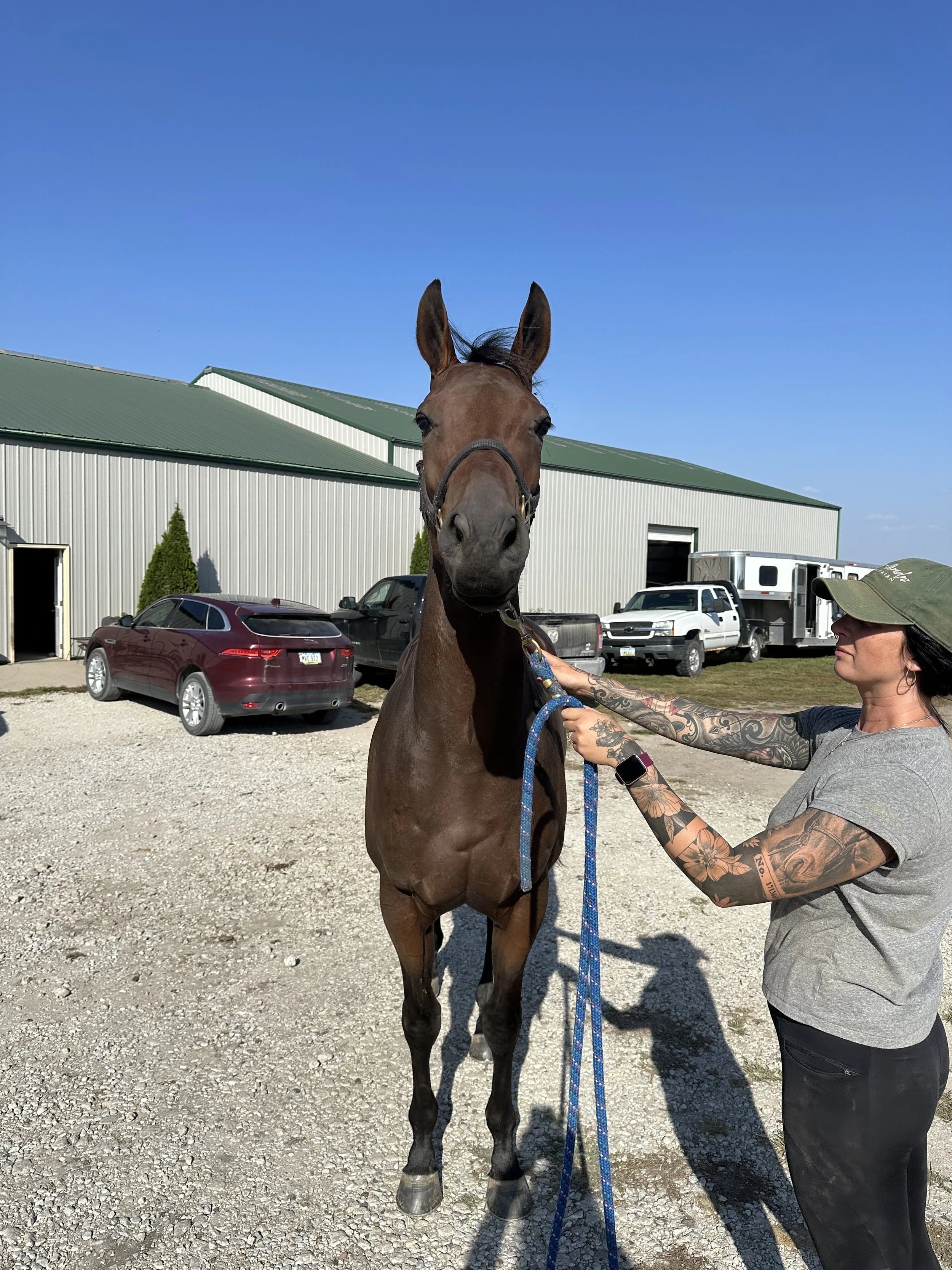 Allegrissimo entered the HART program in September 2025. Retiring sound, his track connections note that he is a kind gelding with no quirks or vices. We are giving him a couple of weeks to get settled and will have more updates as his training progresses. He is currently cleared for any career without limitations.