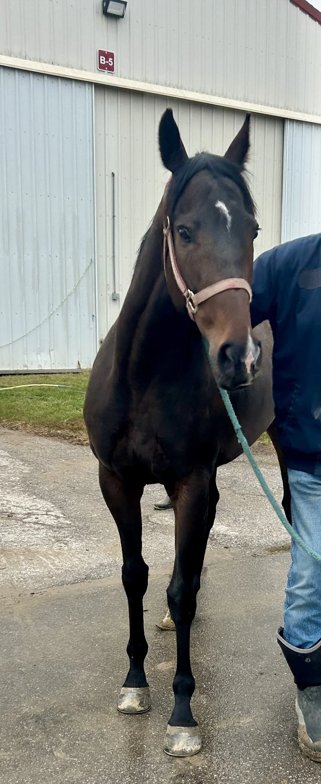 Confetti Betty entered the HART program in May 2025. She has completed her rehabilitation program for a small bow with flying colors. She currently lives outside in a mixed herd and is doing very well. We have started her back in to work as part of a continuation of her rehabilitation and hope to have an update on her future suitability soon.
